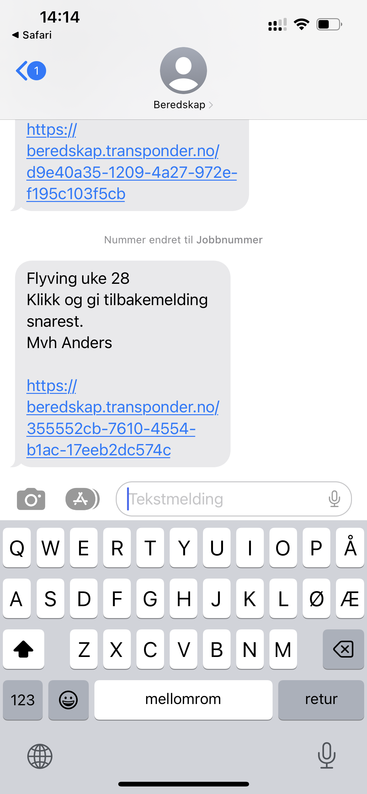 Når du publiserer et oppdrag får alle kontaktene i de valgte gruppene automatisk en SMS med en forespørsel. De trykker på lenken i SMSen og får umiddelbart en engangskode for pålogging med mindre de allerede er pålogget.